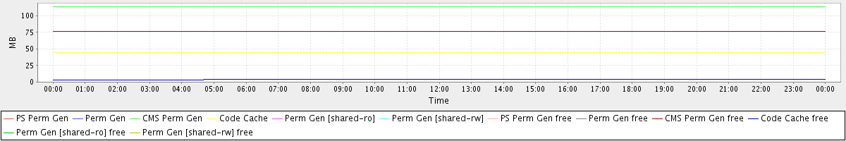 avg(PS Perm Gen) = 0.00 avg(Perm Gen) = 0.00 avg(CMS Perm Gen) = 113.75 avg(Code Cache) = 44.09 avg(Perm Gen [shared-ro]) = 0.00 avg(Perm Gen [shared-rw]) = 0.00 avg(PS Perm Gen free) = 0.00 avg(Perm Gen free) = 0.00 avg(CMS Perm Gen free) = 76.22 avg(Code Cache free) = 3.72 avg(Perm Gen [shared-ro] free) = 0.00 avg(Perm Gen [shared-rw] free) = 0.00