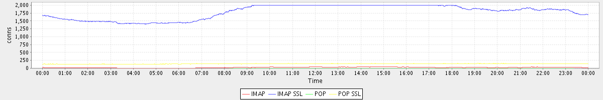 avg(IMAP) = 23.38 avg(IMAP SSL) = 1789.70 avg(POP) = 0.02 avg(POP SSL) = 140.27