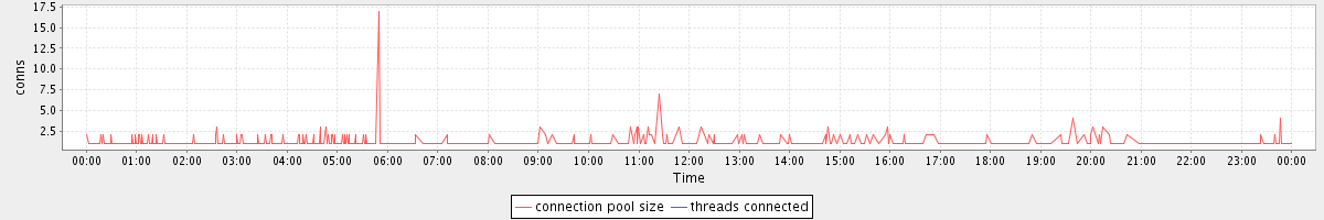 avg(connection pool size) = 0.54 avg(threads connected) = 0.00