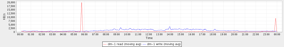 avg(dm-1 read) = 32.56 avg(dm-1 write) = 190.43