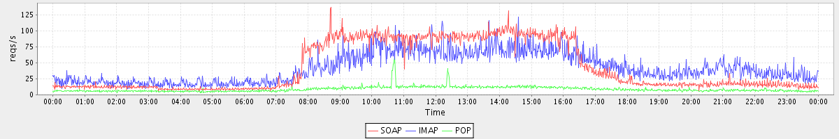 Host zm07.stanford.edu: Mailboxd: Request Rate by Client Protocol