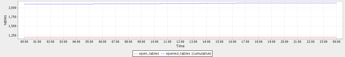 avg(open_tables) = 1199.97 avg(opened_tables (cumulative)) = 2116.10