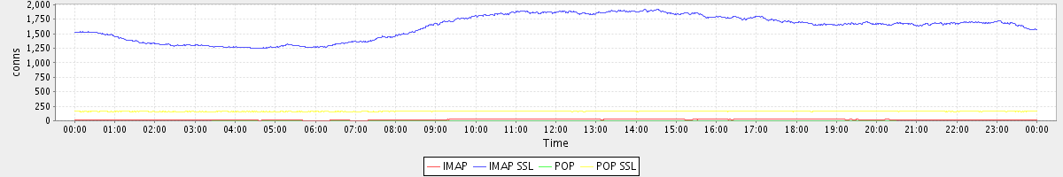 avg(IMAP) = 17.88 avg(IMAP SSL) = 1612.20 avg(POP) = 0.06 avg(POP SSL) = 162.94