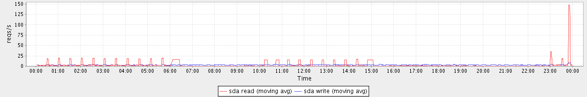 avg(sda1 read) = 23.42 avg(sda1 write) = 46.65