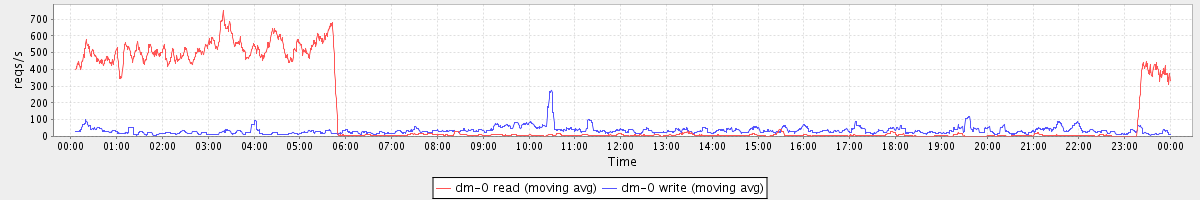 avg(dm-0 read) = 2626.87 avg(dm-0 write) = 139.27