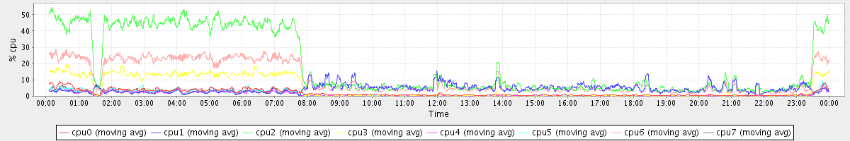 avg(cpu0) = 1.29 avg(cpu1) = 0.15 avg(cpu2) = 0.24 avg(cpu3) = 0.15 avg(cpu4) = 0.12 avg(cpu5) = 0.11 avg(cpu6) = 0.16 avg(cpu7) = 0.11