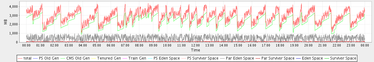 avg(total) = 2922.74 avg(PS Old Gen) = 0.00 avg(CMS Old Gen) = 2350.81 avg(Tenured Gen) = 0.00 avg(Train Gen) = 0.00 avg(PS Eden Space) = 0.00 avg(PS Survivor Space) = 0.00 avg(Par Eden Space) = 489.22 avg(Par Survivor Space) = 82.71 avg(Eden Space) = 0.00 avg(Survivor Space) = 0.00