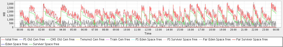 avg(total free) = 1654.06 avg(PS Old Gen free) = 0.00 avg(CMS Old Gen free) = 1148.41 avg(Tenured Gen free) = 0.00 avg(Train Gen free) = 0.00 avg(PS Eden Space free) = 0.00 avg(PS Survivor Space free) = 0.00 avg(Par Eden Space free) = 471.02 avg(Par Survivor Space free) = 34.63 avg(Eden Space free) = 0.00 avg(Survivor Space free) = 0.00