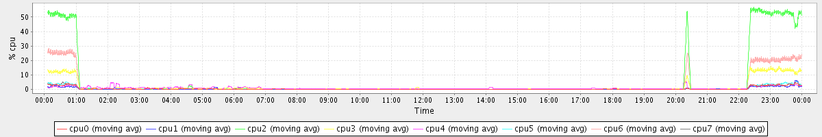 avg(cpu0) = 0.91 avg(cpu1) = 0.82 avg(cpu2) = 1.11 avg(cpu3) = 0.79 avg(cpu4) = 0.52 avg(cpu5) = 0.45 avg(cpu6) = 0.51 avg(cpu7) = 0.36