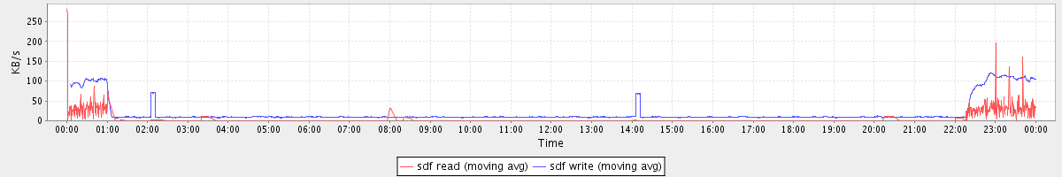 avg(sda read) = 0.75 avg(sda write) = 2.60