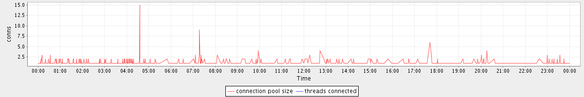 avg(connection pool size) = 0.57 avg(threads connected) = 0.00