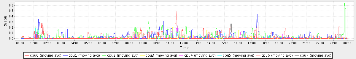 avg(cpu0) = 0.50 avg(cpu1) = 0.01 avg(cpu2) = 0.01 avg(cpu3) = 0.00 avg(cpu4) = 0.00 avg(cpu5) = 0.00 avg(cpu6) = 0.01 avg(cpu7) = 0.00