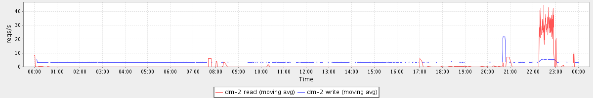 avg(dm-1 read) = 0.08 avg(dm-1 write) = 10.11