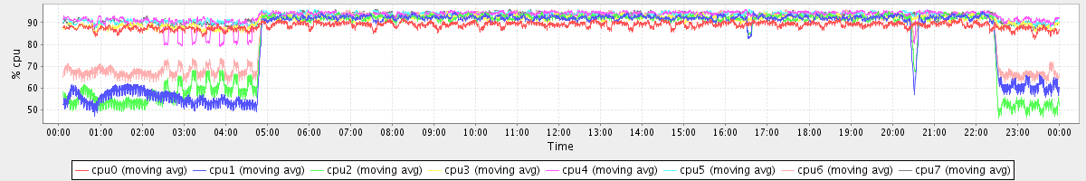 avg(cpu0) = 88.72 avg(cpu1) = 82.67 avg(cpu2) = 82.60 avg(cpu3) = 91.20 avg(cpu4) = 92.95 avg(cpu5) = 92.92 avg(cpu6) = 86.71 avg(cpu7) = 92.83