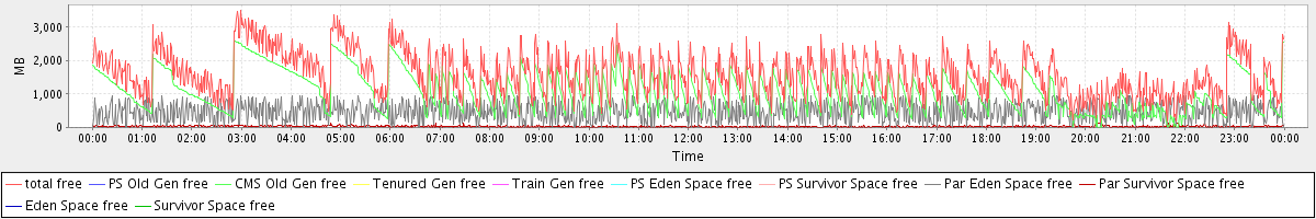 avg(total free) = 1596.56 avg(PS Old Gen free) = 0.00 avg(CMS Old Gen free) = 1090.02 avg(Tenured Gen free) = 0.00 avg(Train Gen free) = 0.00 avg(PS Eden Space free) = 0.00 avg(PS Survivor Space free) = 0.00 avg(Par Eden Space free) = 474.11 avg(Par Survivor Space free) = 32.44 avg(Eden Space free) = 0.00 avg(Survivor Space free) = 0.00