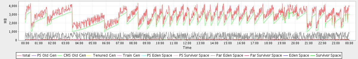 avg(total) = 2952.81 avg(PS Old Gen) = 0.00 avg(CMS Old Gen) = 2390.31 avg(Tenured Gen) = 0.00 avg(Train Gen) = 0.00 avg(PS Eden Space) = 0.00 avg(PS Survivor Space) = 0.00 avg(Par Eden Space) = 476.00 avg(Par Survivor Space) = 86.50 avg(Eden Space) = 0.00 avg(Survivor Space) = 0.00