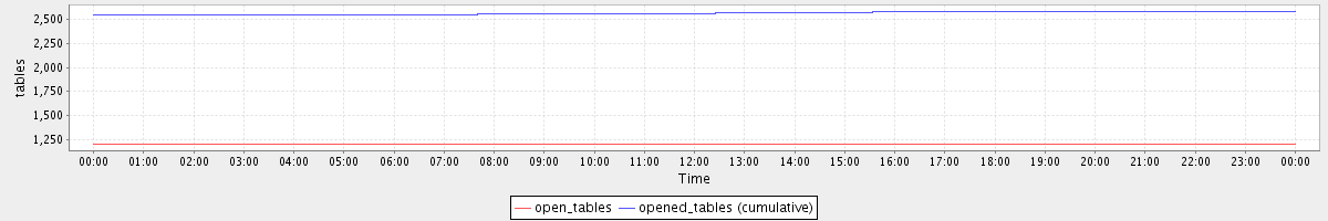 avg(open_tables) = 1199.92 avg(opened_tables (cumulative)) = 2565.87