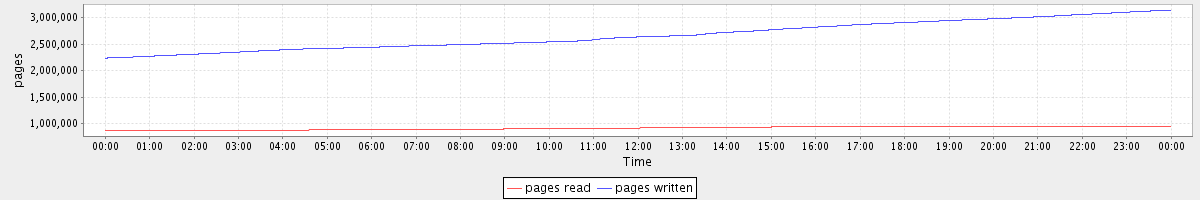 avg(pages read) = 913411.81 avg(pages written) = 2663023.20