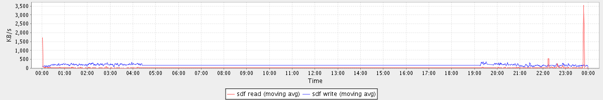 avg(sda read) = 2.37 avg(sda write) = 8.38