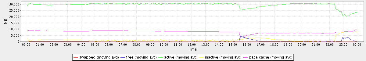 avg(swapped) = 1.58 avg(free) = 367.08 avg(active) = 29529.54 avg(inactive) = 1591.05 avg(page cache) = 7871.36