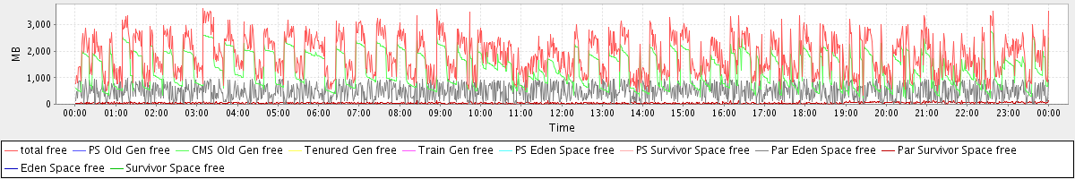 avg(total free) = 1850.40 avg(PS Old Gen free) = 0.00 avg(CMS Old Gen free) = 1318.85 avg(Tenured Gen free) = 0.00 avg(Train Gen free) = 0.00 avg(PS Eden Space free) = 0.00 avg(PS Survivor Space free) = 0.00 avg(Par Eden Space free) = 489.86 avg(Par Survivor Space free) = 41.68 avg(Eden Space free) = 0.00 avg(Survivor Space free) = 0.00