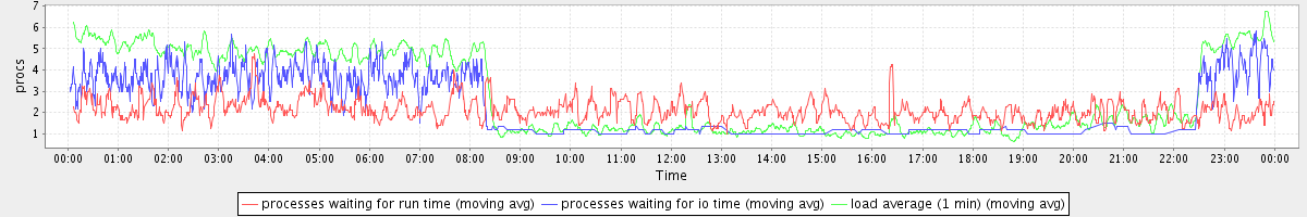 avg(processes waiting for run time) = 1.27 avg(processes waiting for io time) = 1.48 avg(load average (1 min)) = 2.83