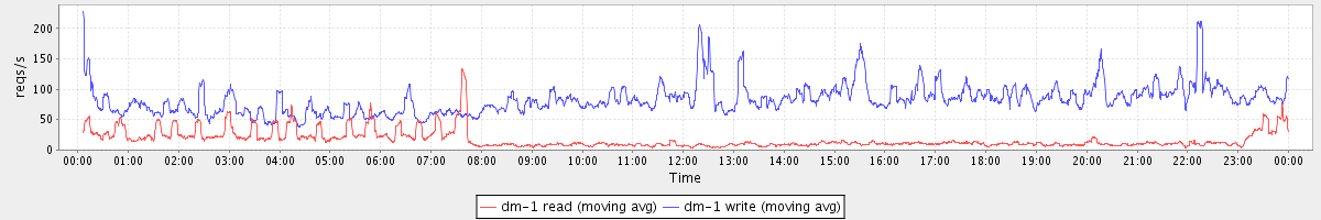 avg(dm-0 read) = 145.79 avg(dm-0 write) = 36.12