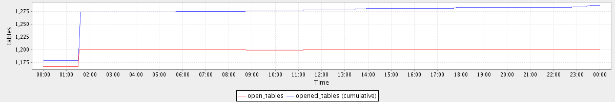 avg(open_tables) = 1197.80 avg(opened_tables (cumulative)) = 1272.23