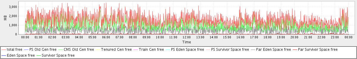 avg(total free) = 1560.99 avg(PS Old Gen free) = 0.00 avg(CMS Old Gen free) = 1054.47 avg(Tenured Gen free) = 0.00 avg(Train Gen free) = 0.00 avg(PS Eden Space free) = 0.00 avg(PS Survivor Space free) = 0.00 avg(Par Eden Space free) = 493.81 avg(Par Survivor Space free) = 12.70 avg(Eden Space free) = 0.00 avg(Survivor Space free) = 0.00