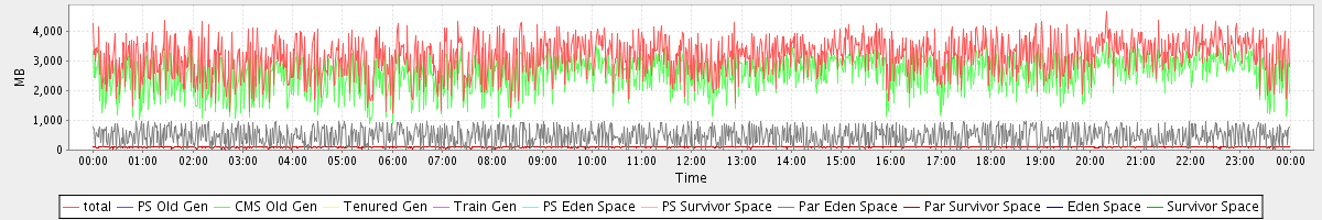 avg(total) = 3144.45 avg(PS Old Gen) = 0.00 avg(CMS Old Gen) = 2565.53 avg(Tenured Gen) = 0.00 avg(Train Gen) = 0.00 avg(PS Eden Space) = 0.00 avg(PS Survivor Space) = 0.00 avg(Par Eden Space) = 471.06 avg(Par Survivor Space) = 107.86 avg(Eden Space) = 0.00 avg(Survivor Space) = 0.00