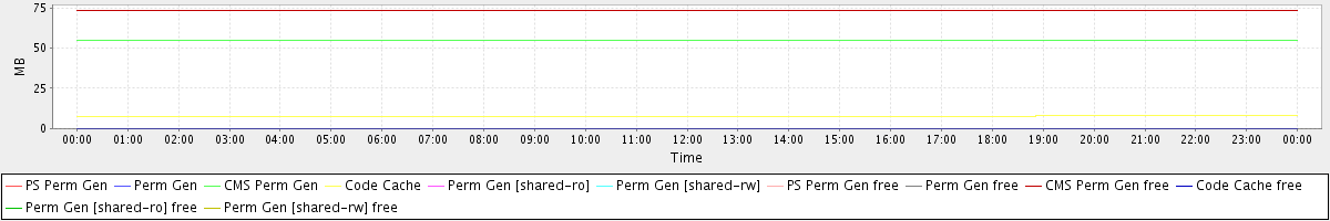 avg(PS Perm Gen) = 0.00 avg(Perm Gen) = 0.00 avg(CMS Perm Gen) = 54.61 avg(Code Cache) = 7.70 avg(Perm Gen [shared-ro]) = 0.00 avg(Perm Gen [shared-rw]) = 0.00 avg(PS Perm Gen free) = 0.00 avg(Perm Gen free) = 0.00 avg(CMS Perm Gen free) = 73.39 avg(Code Cache free) = 0.19 avg(Perm Gen [shared-ro] free) = 0.00 avg(Perm Gen [shared-rw] free) = 0.00