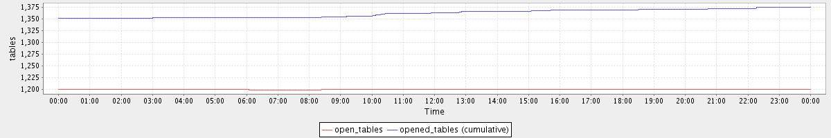 avg(open_tables) = 1199.90 avg(opened_tables (cumulative)) = 1361.35