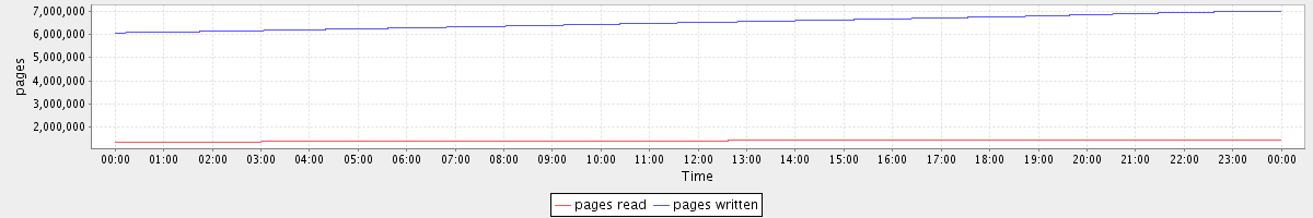 avg(pages read) = 1409098.46 avg(pages written) = 6519457.36