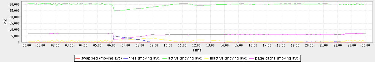 avg(swapped) = 1.58 avg(free) = 451.04 avg(active) = 29797.30 avg(inactive) = 1219.12 avg(page cache) = 6227.72