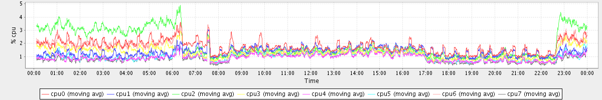 avg(cpu0) = 0.15 avg(cpu1) = 0.02 avg(cpu2) = 0.09 avg(cpu3) = 0.02 avg(cpu4) = 0.00 avg(cpu5) = 0.00 avg(cpu6) = 0.05 avg(cpu7) = 0.00
