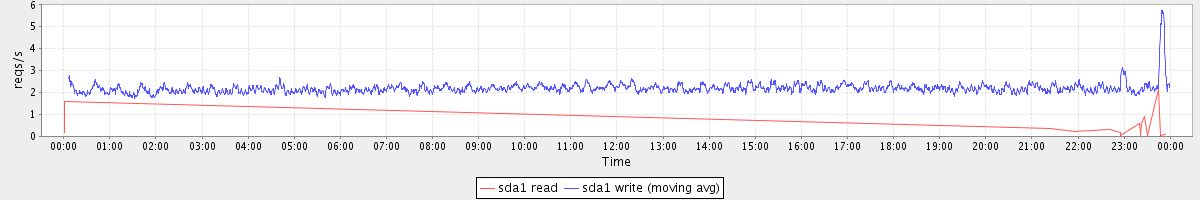 avg(sda1 read) = 0.00 avg(sda1 write) = 2.20