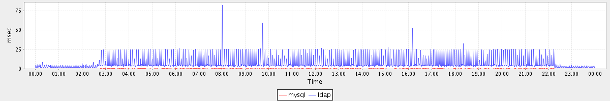 avg(mysql) = 0.21 avg(ldap) = 6.93