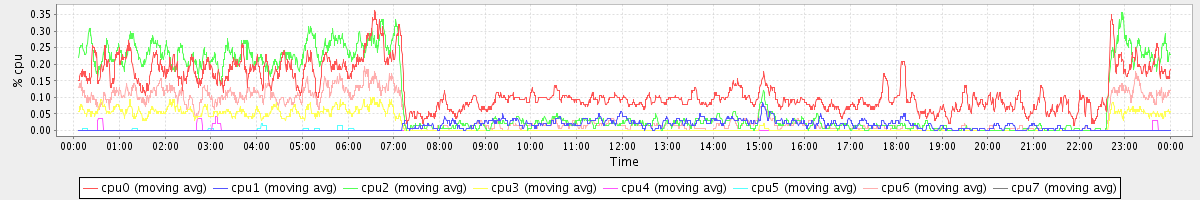 avg(cpu0) = 0.12 avg(cpu1) = 0.01 avg(cpu2) = 0.10 avg(cpu3) = 0.02 avg(cpu4) = 0.00 avg(cpu5) = 0.00 avg(cpu6) = 0.05 avg(cpu7) = 0.00