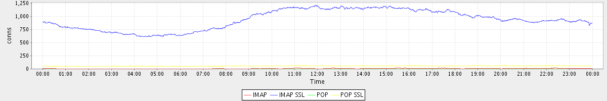 Host zm03.stanford.edu: Mailboxd: Active Connections by Client Protocol