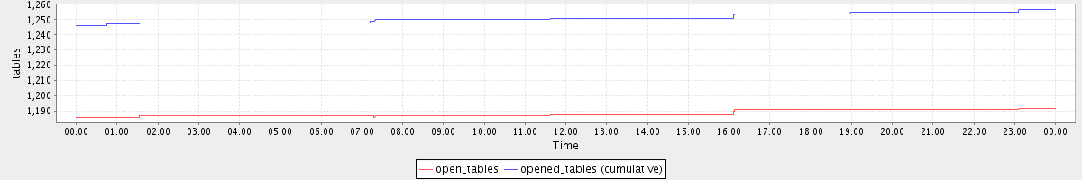 avg(open_tables) = 1188.47 avg(opened_tables (cumulative)) = 1251.08