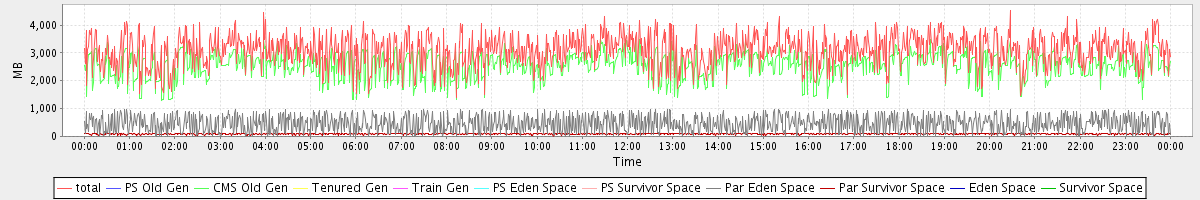 avg(total) = 3089.36 avg(PS Old Gen) = 0.00 avg(CMS Old Gen) = 2540.40 avg(Tenured Gen) = 0.00 avg(Train Gen) = 0.00 avg(PS Eden Space) = 0.00 avg(PS Survivor Space) = 0.00 avg(Par Eden Space) = 460.35 avg(Par Survivor Space) = 88.60 avg(Eden Space) = 0.00 avg(Survivor Space) = 0.00