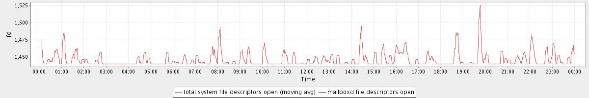 avg(total system file descriptors open) = 1446.30 avg(mailboxd file descriptors open) = 0.00