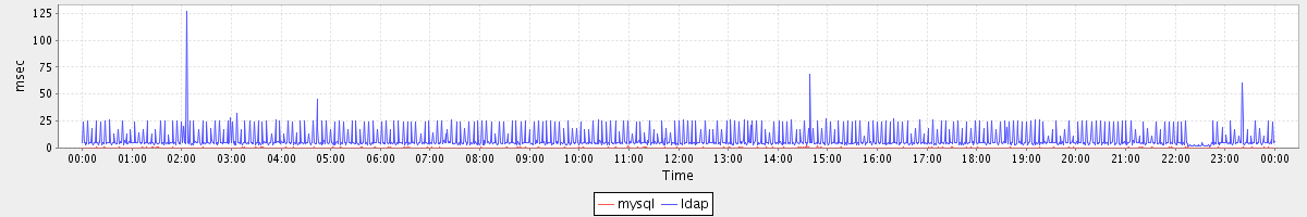 avg(mysql) = 0.23 avg(ldap) = 7.97