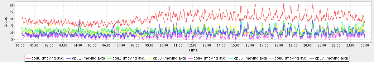 avg(cpu0) = 1.57 avg(cpu1) = 0.11 avg(cpu2) = 0.21 avg(cpu3) = 0.12 avg(cpu4) = 0.06 avg(cpu5) = 0.08 avg(cpu6) = 0.11 avg(cpu7) = 0.06
