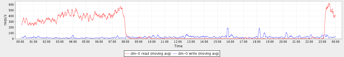 avg(dm-0 read) = 2814.59 avg(dm-0 write) = 119.05