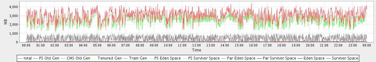 avg(total) = 2997.19 avg(PS Old Gen) = 0.00 avg(CMS Old Gen) = 2452.98 avg(Tenured Gen) = 0.00 avg(Train Gen) = 0.00 avg(PS Eden Space) = 0.00 avg(PS Survivor Space) = 0.00 avg(Par Eden Space) = 457.04 avg(Par Survivor Space) = 87.17 avg(Eden Space) = 0.00 avg(Survivor Space) = 0.00
