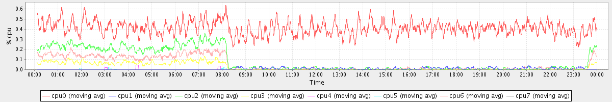 avg(cpu0) = 0.41 avg(cpu1) = 0.01 avg(cpu2) = 0.09 avg(cpu3) = 0.03 avg(cpu4) = 0.00 avg(cpu5) = 0.00 avg(cpu6) = 0.06 avg(cpu7) = 0.00