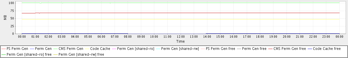 avg(PS Perm Gen) = 0.00 avg(Perm Gen) = 0.00 avg(CMS Perm Gen) = 100.89 avg(Code Cache) = 47.18 avg(Perm Gen [shared-ro]) = 0.00 avg(Perm Gen [shared-rw]) = 0.00 avg(PS Perm Gen free) = 0.00 avg(Perm Gen free) = 0.00 avg(CMS Perm Gen free) = 67.79 avg(Code Cache free) = 0.55 avg(Perm Gen [shared-ro] free) = 0.00 avg(Perm Gen [shared-rw] free) = 0.00