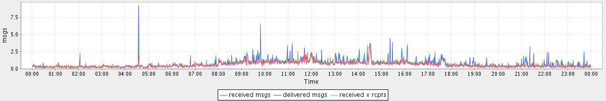 avg(received msgs) = 0.63 avg(delivered msgs) = 0.71 avg(received x rcpts) = 0.80