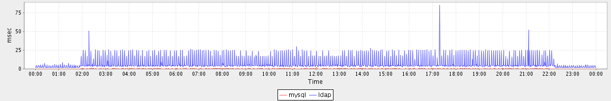 avg(mysql) = 0.19 avg(ldap) = 7.12